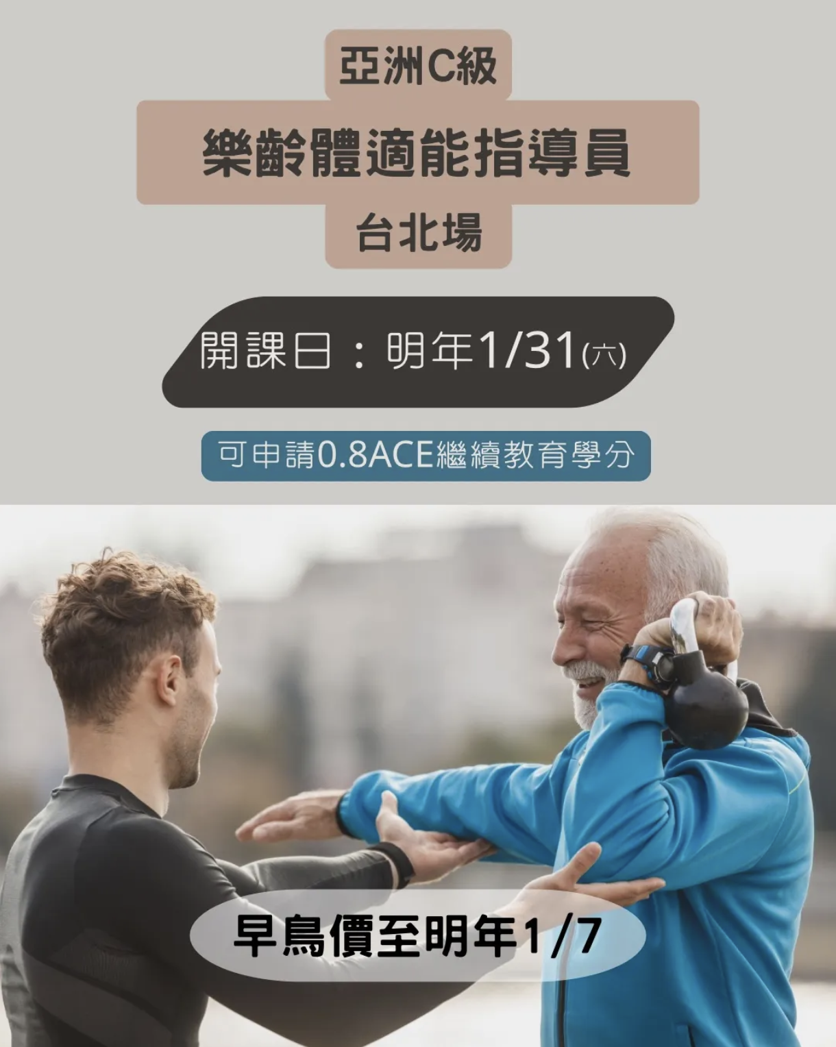 包含了解人口老化趨勢、老化的生理改變、銀髮族行為改變建議、銀髮族體適能評估、銀髮族柔軟度訓練、銀髮族阻力訓練、銀髮族心血管訓練、銀髮族平衡訓練及特殊族群考量之銀髮族動態生活選擇,幫助學員了解健身產業從業人員需學習的目標及如何發展個人的知識領域,為進入體適能產業做準備。