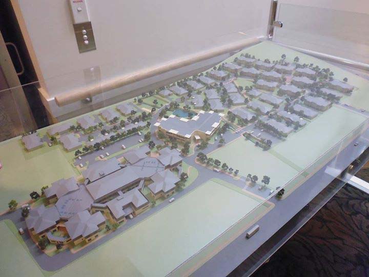 下圖為一大型安養院的模型,左下角安養院可以住400多人,周圍還有獨棟的老人住宅,鄰近地方也有醫院。