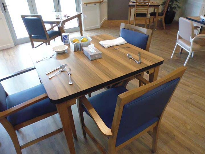 新的趨勢是安養院和社區融為一體,下圖為安養院的咖啡廳旁邊還有理髮廳(沒有入鏡),窗明几淨且平價的飲食吸引不少社區的民眾來此聚會。如此可以增加社區民眾的入住率外,在此入住的長者也不會覺得自己是被隔離在安養院,反而像是住在一般社區中。