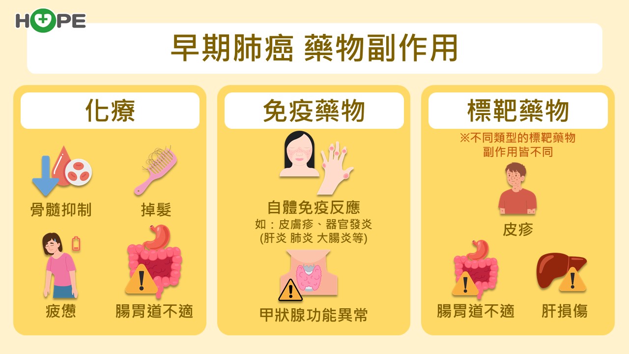 吳醫師說,對沒有基因突變(如 EGFR、ALK) 的早期肺癌病人,臨床試驗已證實效果佳。但若有基因突變,仍以標靶治療為主,免疫藥物助益有限。