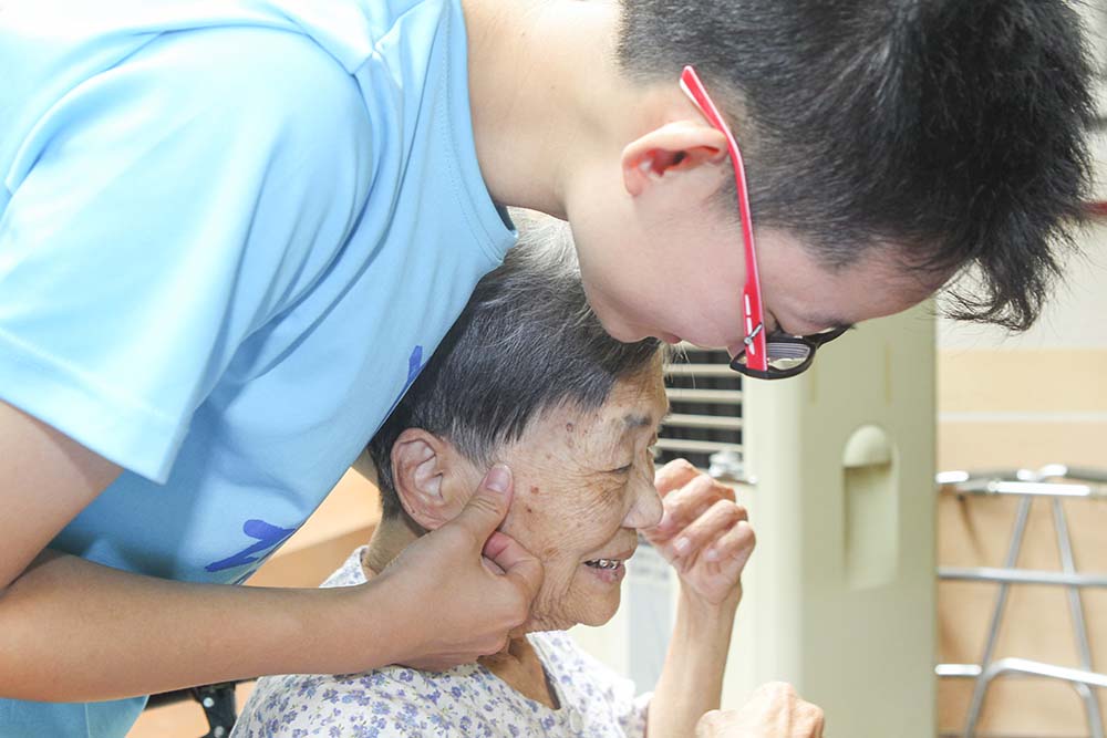 大學念的是電子工程學系,升大四那年暑假,她受曾擔任醫師助理的父親影響,報名照顧服務員訓練課程,上課、實習地點就在同仁仁愛之家;後來又參加紅十字會的急救訓練課程,因為:「多學習一些技能,有需要時能夠幫助老人家!」畢業後在家人支持下,選擇成為旁人眼中相當辛苦的照護服務員,她不以為苦,還將照顧長輩當作終身職志,要一直做下去。(你也會想看:行動藥師送藥到家 為長輩念家書)